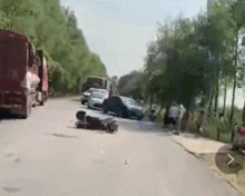 据一位目击者描述,当时红色轿车正沿着道路行驶,突然货车从后方超车而来,由于车速过快,两车发生了碰撞。事故发生后,红色轿车瞬间失控,撞上了路边的护栏,车头严重变形。货车则直接冲进了路边的绿化带,车尾受损严重。